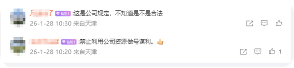 该新规公布后,引发网络热议。有网友对相关条款的合规性提出疑问;也有网友对禁止利用公司资源谋利的要求表示支持。