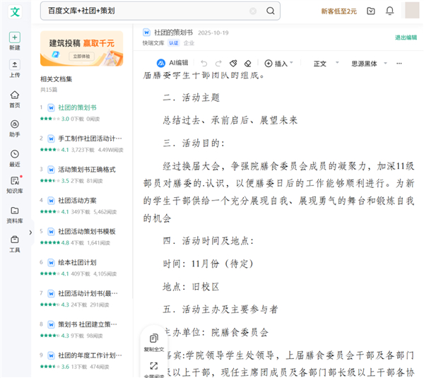 学生时代,总会需要写一两份活动策划、述职报告、申请书等等,不写没法交差,真要写吧,从 0 开始原创的性价比也太低了。